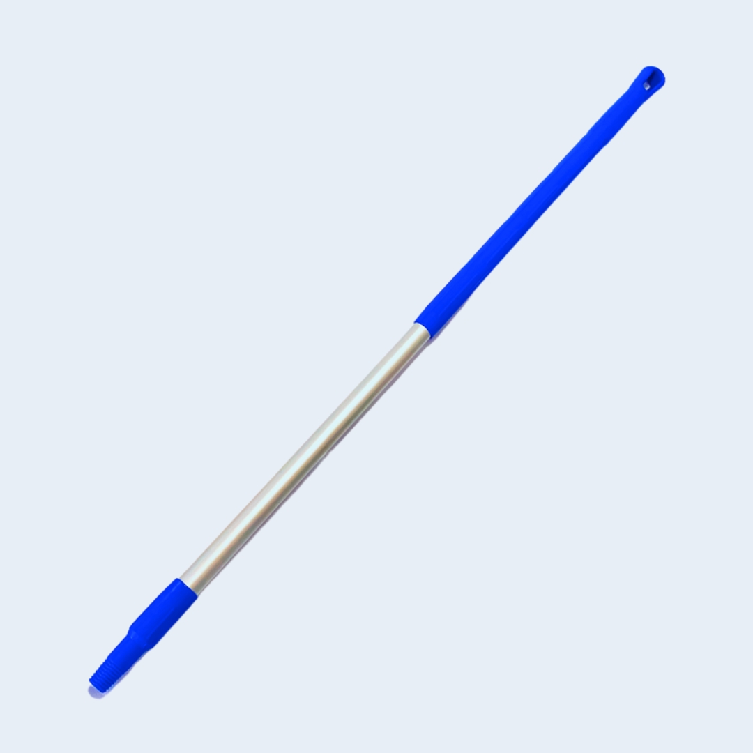 Cabo de aluminio estriado de 1,4 m, con rosca universal y puño. Ideal para uso industrial. Se recomienda para el uso con cepillos industriales, cepillos sanitarios y mopas de lavado. Codificación por colores para uso sanitario.